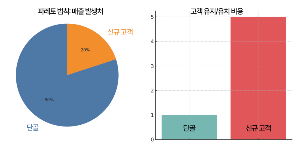 업계에서는 “고객 유지 비용은 신규 고객 유치 비용의 5분의 1”이라는 말이 있을 정도로 단골 관리가 훨씬 효율적인 전략입니다.