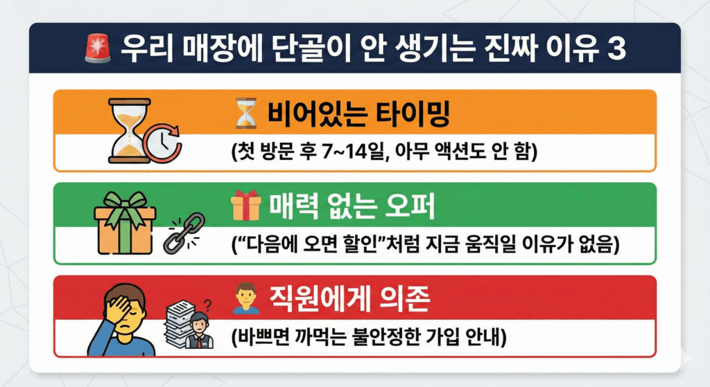 손님이 “없어서”가 아니라 “다시 올 구조가 없어서” 매장 재방문이 안 생기는 경우가 많습니다.